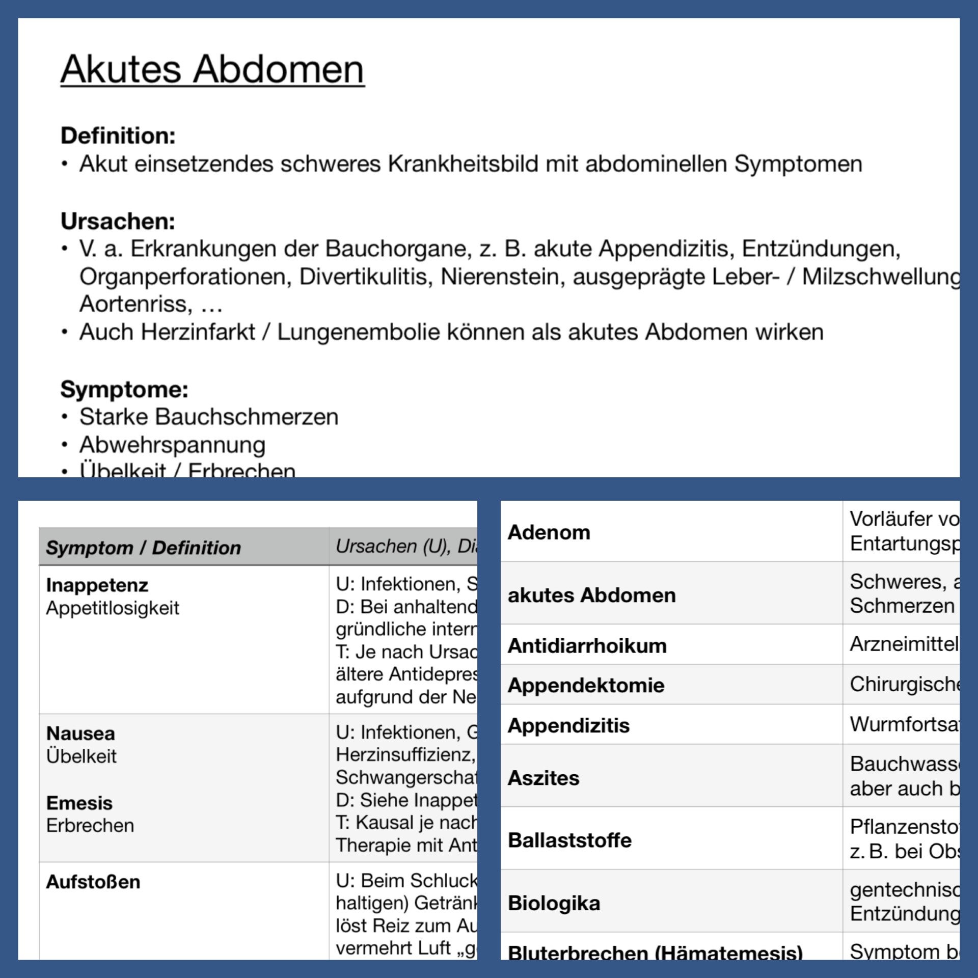Lernzettel / Übersicht "Gastrointestinale Symptome" / Vokabeln l 25 Seiten